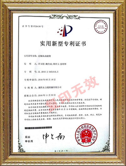 定軸從動(dòng)滾筒實(shí)用新型專利證書
