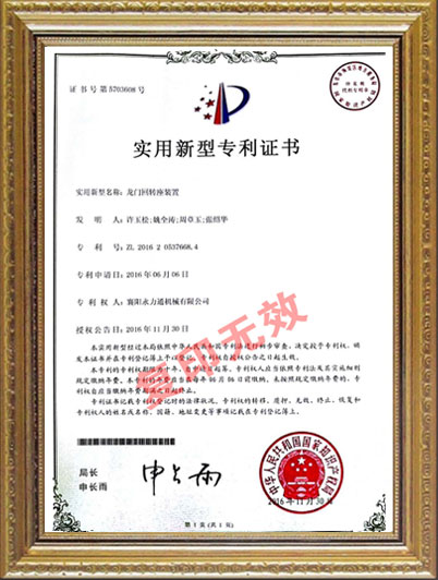 龍門回轉(zhuǎn)座裝置新型專利證書